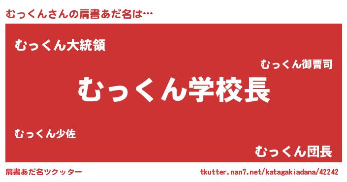 | ヒーロー風カッコイイあだ名 | 『慈愛の使者むっくん』『魔戒騎士ムッ』 |