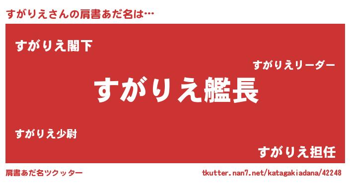 | 意味不明あだ名 | 『自称すがりえ』『永久保存すがりえ』 |