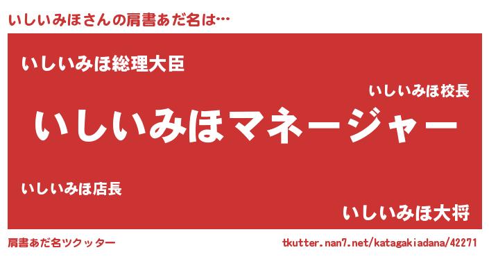 | 男性向けラノベタイトル風あだ名 | 『はたらくいしいみほさま!』 |
