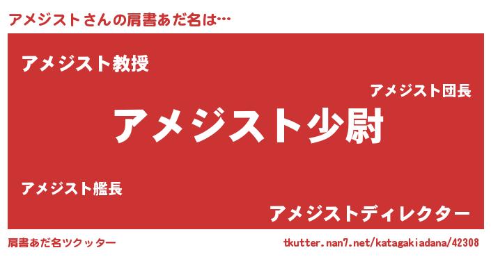 | ヒーロー風カッコイイあだ名 | 『友情の使者アメジスト』『魔戒騎士アメ』 |