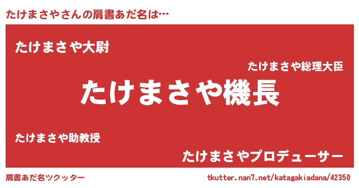 | 男性向けラノベタイトル風あだ名 | 『うちのたけまさやが世界を掌握している!』 |