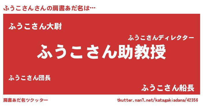 | 男性向けラノベタイトル風あだ名 | 『ノーゲーム・ノーフウコサン』 |