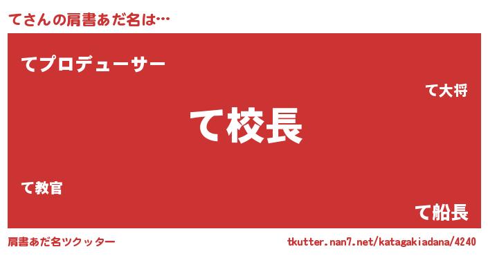 | 意味不明あだ名 | 『永久保存て』『つくし科て属』 |