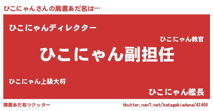 | 男性向けラノベタイトル風あだ名 | 『ひこにゃんという概念が存在しない退屈な世界 』 |