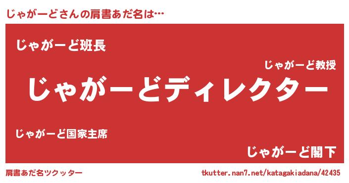 | 意味不明あだ名 | 『とにかく怪しいじゃがーど』 |