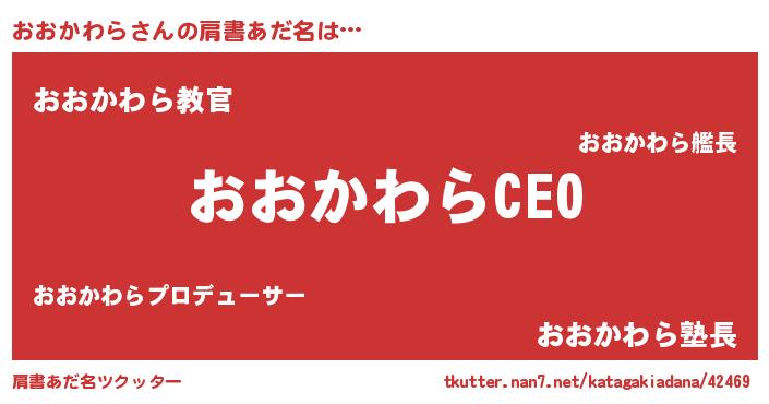 | ヒーロー風カッコイイあだ名 | 『スーパーオオカワラ』『仮面オオダー』 |
