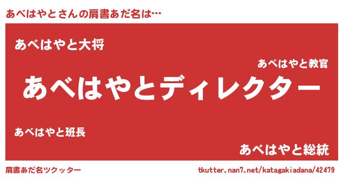 | 男性向けラノベタイトル風あだ名 | 『あべはやとに滅ぼされるだけの簡単なお仕事です』 |