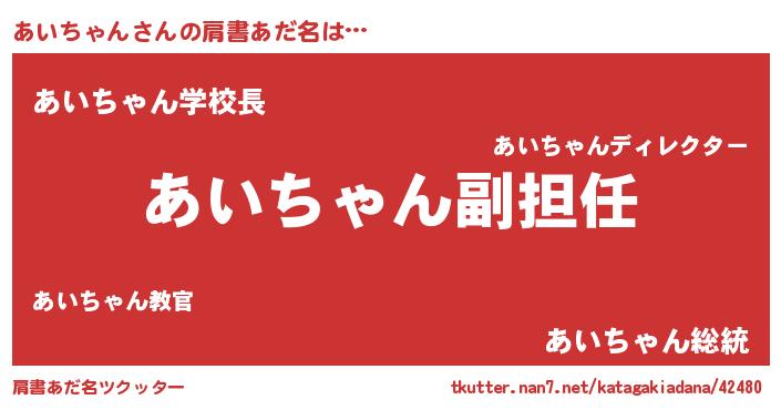 | 意味不明あだ名 | 『永久保存あいちゃん』『自称あいちゃん』 |