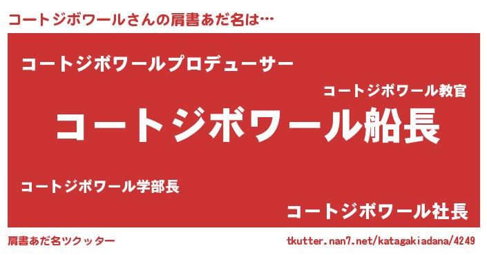 | 女子向けラノベタイトル風あだ名 | 『シンデレラコートジボワール家の靴箱館』 |