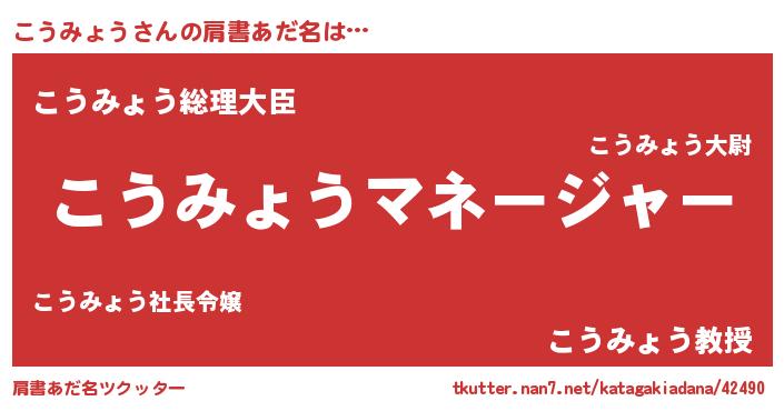 | 男性向けラノベタイトル風あだ名 | 『こうみょうに滅ぼされるだけの簡単なお仕事です』 |