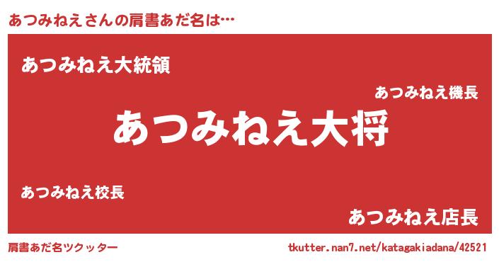 | 料理風あだ名 | 『あつみねえごはん』 |