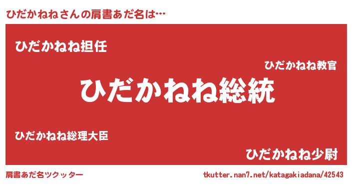 | ヒーロー風カッコイイあだ名 | 『超時空戦士ヒダカネネ』『仮面ヒダダー』 |