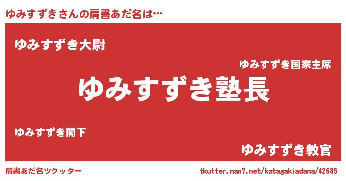 | 男性向けラノベタイトル風あだ名 | 『ダンジョンにゆみすずきを求めるのは間違っているだろうか』 |