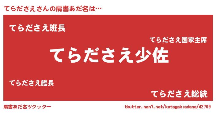 | 男性向けラノベタイトル風あだ名 | 『転生したらてらださえだった件』 |