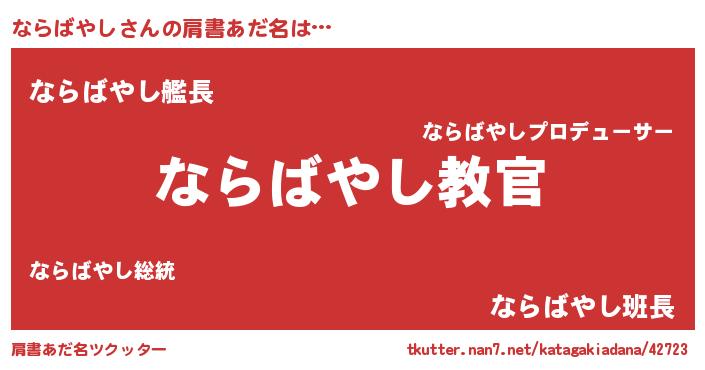| 料理風あだ名 | 『ならばやしのカルパッチョ風』 |