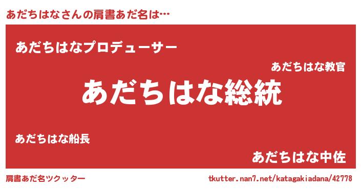 | 意味不明あだ名 | 『自称あだちはな』『ペロリンあだちはな』 |