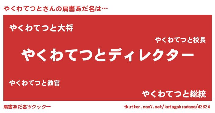 | ヘコむあだ名 | 『やくわてつと(爆)』『やくっちょ』 |