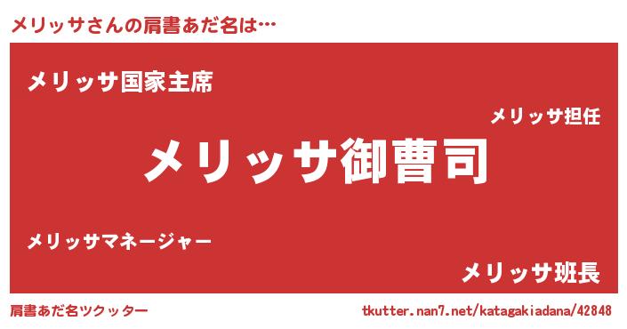| 意味不明あだ名 | 『ペロリンメリッサ』『永久保存メリッサ』 |