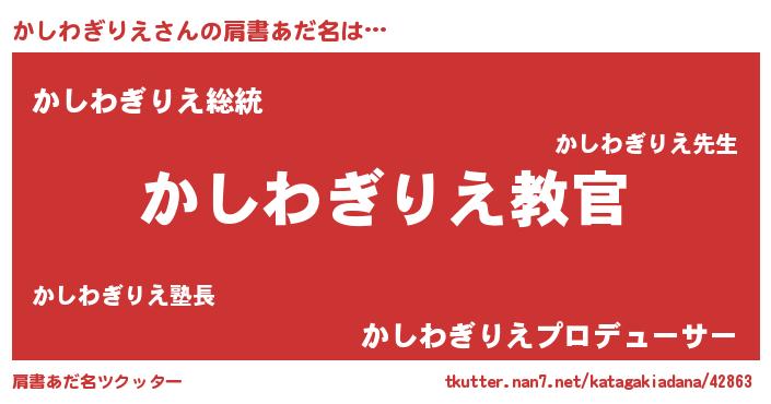 | ヒーロー風カッコイイあだ名 | 『仮面カシダー』『究極戦士カシワギリエ』 |