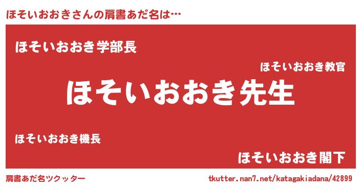 | 男性向けラノベタイトル風あだ名 | 『ほそいおおきという概念が存在しない退屈な世界 』 |