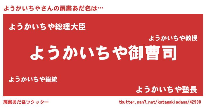| 男性向けラノベタイトル風あだ名 | 『ようかいちやの憂鬱』 |