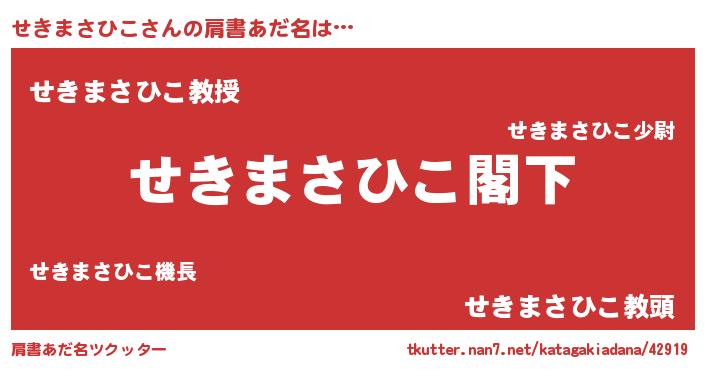 | 男性向けラノベタイトル風あだ名 | 『Re:せきまさひこから始める異世界生活』 |