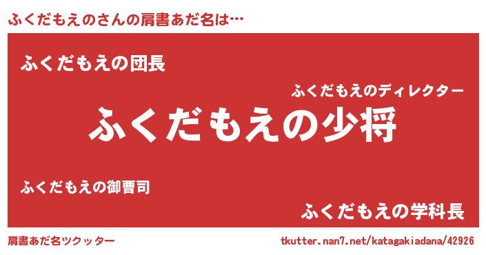 | ヒーロー風カッコイイあだ名 | 『炎刃騎士フク』『愛の使者ふくだもえの』 |