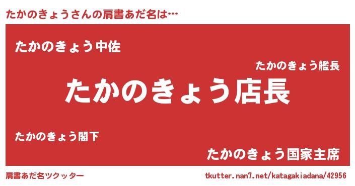 | 男性向けラノベタイトル風あだ名 | 『タカノキョウアートオンライン』 |