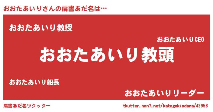 | 男性向けラノベタイトル風あだ名 | 『おおたあいりという概念が存在しない退屈な世界 』 |