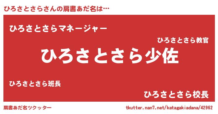 | 男性向けラノベタイトル風あだ名 | 『ヒロサトサラスレイヤー』 |