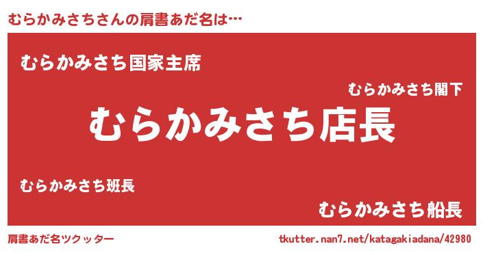 | ヒーロー風カッコイイあだ名 | 『スーパームラカミサチ』『銀牙騎士ムラ』 |
