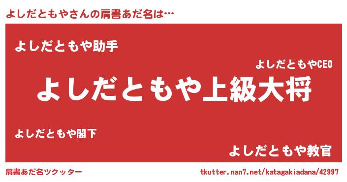 | ヒーロー風カッコイイあだ名 | 『慈愛の使者よしだともや』 |