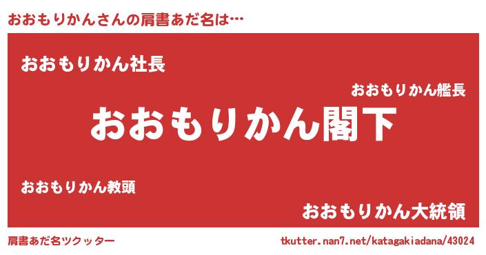 | 男性向けラノベタイトル風あだ名 | 『Re:おおもりかんから始める異世界生活』 |
