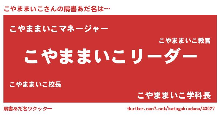 | ヘコむあだ名 | 『こやぷりん』『こやままいこ(小並感)』 |