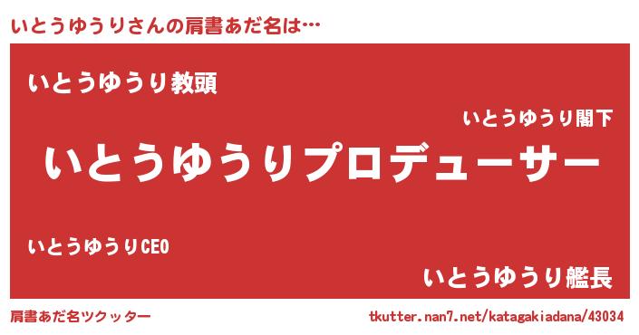 | 胡散臭い通販商品みたいなあだ名 | 『来世でも幸せになれる水素水…その名も「いとうゆうり」』 |