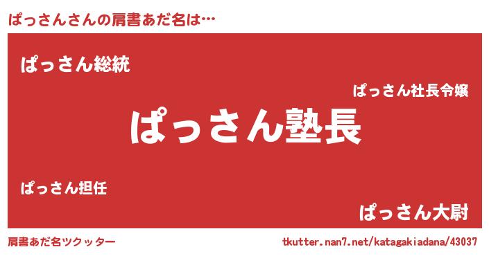 | 意味不明あだ名 | 『とにかく怪しいぱっさん』 |