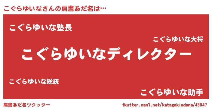 | ヘコむあだ名 | 『こぐっぺ』『こぐもー』『豆乳』 |