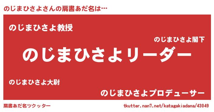 | 意味不明あだ名 | 『とにかく怪しいのじまひさよ』 |