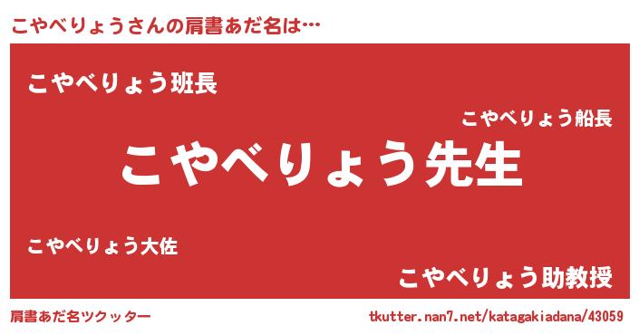 | 男性向けラノベタイトル風あだ名 | 『こやべりょうという概念が存在しない退屈な世界 』 |