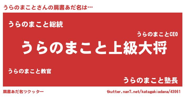 | 男性向けラノベタイトル風あだ名 | 『ウラノマコトスレイヤー』 |