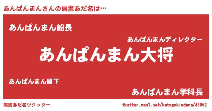 | 男性向けラノベタイトル風あだ名 | 『転生したらあんぱんまんだった件』 |