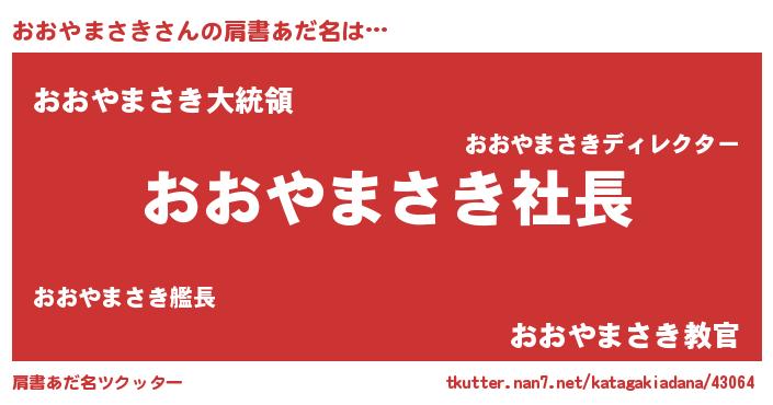 | ヒーロー風カッコイイあだ名 | 『スーパーオオヤマサキ』『仮面オオダー』 |