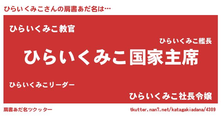 | 意味不明あだ名 | 『ひらいくみこフォーエバー』 |