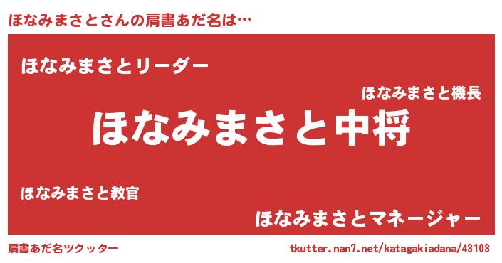| ポケモン風あだ名 | 『ホナキング』『ヒホナミマサト』 |