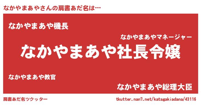 | 男性向けラノベタイトル風あだ名 | 『なかやまあやの憂鬱』 |