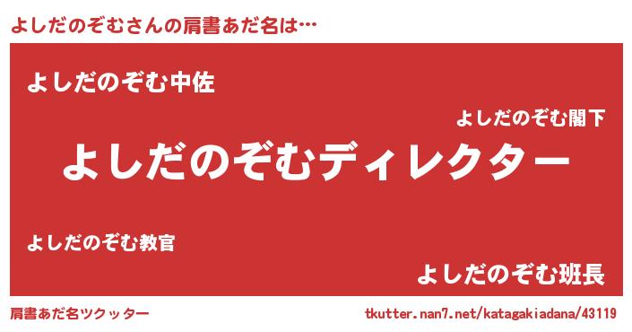 | 男性向けラノベタイトル風あだ名 | 『はたらくよしだのぞむさま!』 |