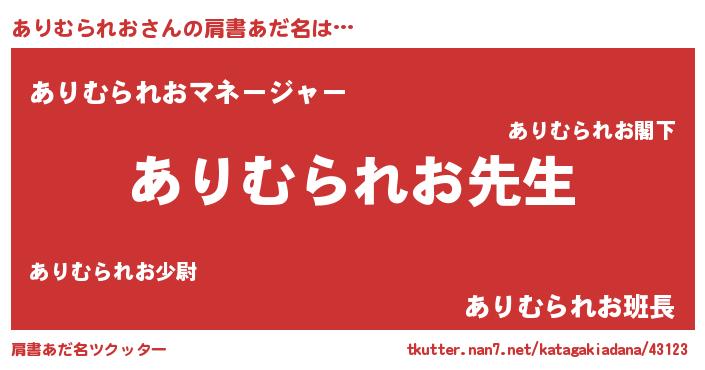 | ヘコむあだ名 | 『ありむられお(小並感)』『あり太郎』 |