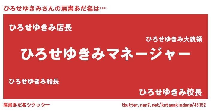 | 男性向けラノベタイトル風あだ名 | 『ひろせゆきみに滅ぼされるだけの簡単なお仕事です』 |