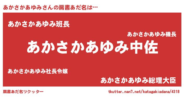 | 男性向けラノベタイトル風あだ名 | 『転生したらあかさかあゆみだった件』 |