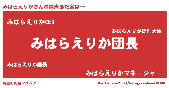 | ヒーロー風カッコイイあだ名 | 『炎刃騎士ミハ』『スーパーミハラエリカ』 |